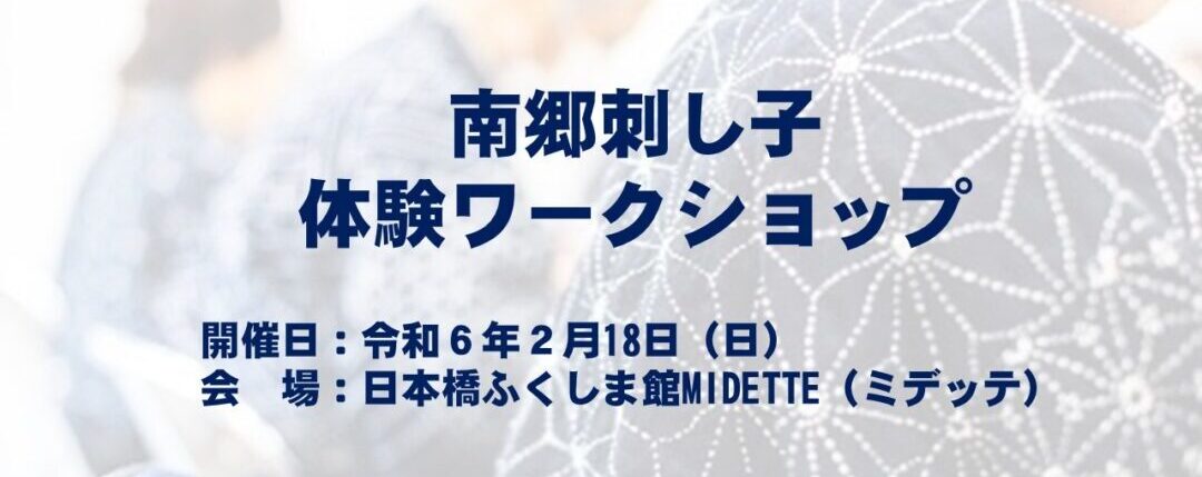 お知らせ【2月18日(日)開催】南郷刺し子体験ワークショップ(日本橋ふくしま館MIDETTE)