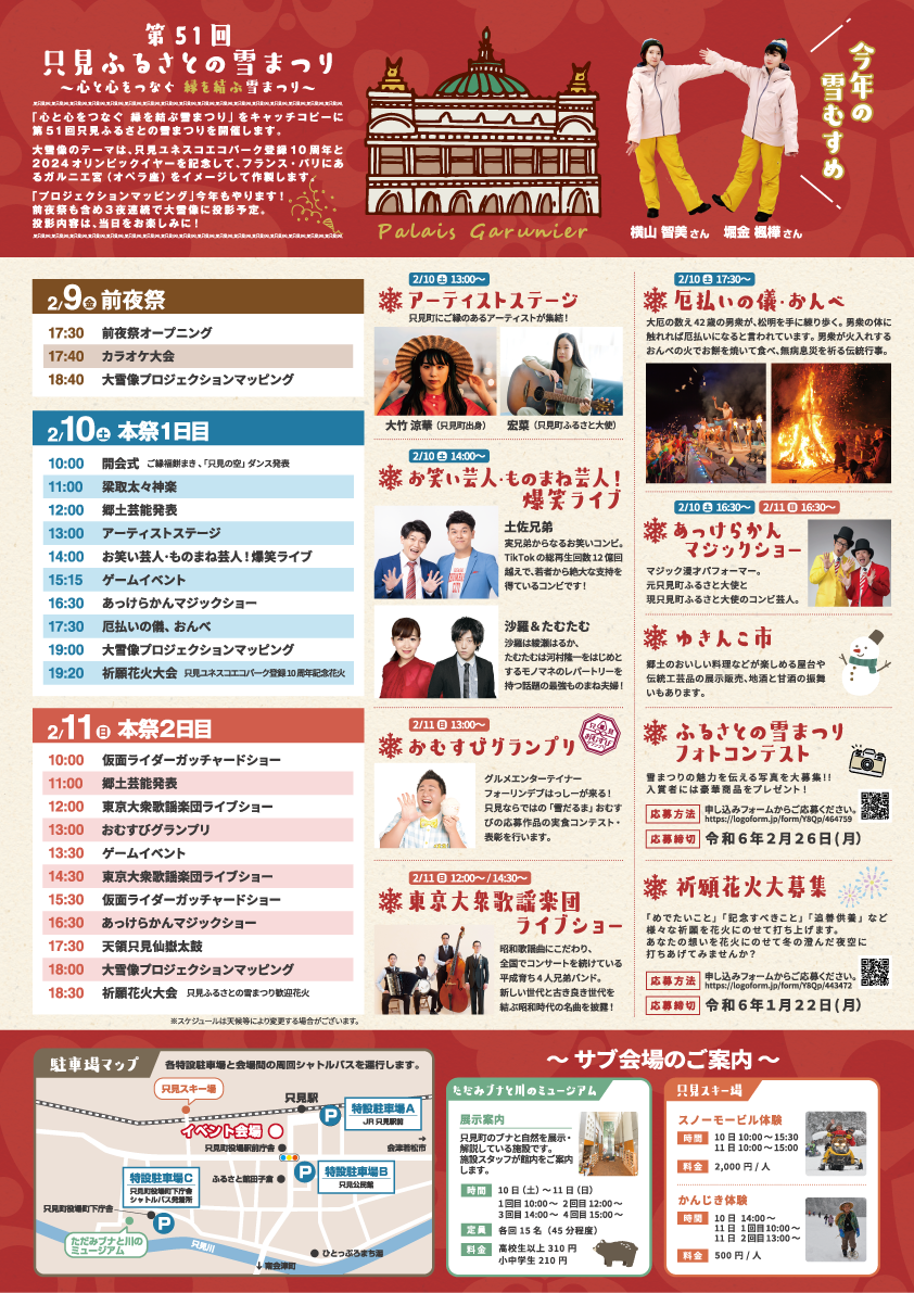 | ※詳しくはチラシまたは「只見ふるさとの雪まつり」ホームページ(https://tadamisnowfes.com/)をご覧ください。 | ||