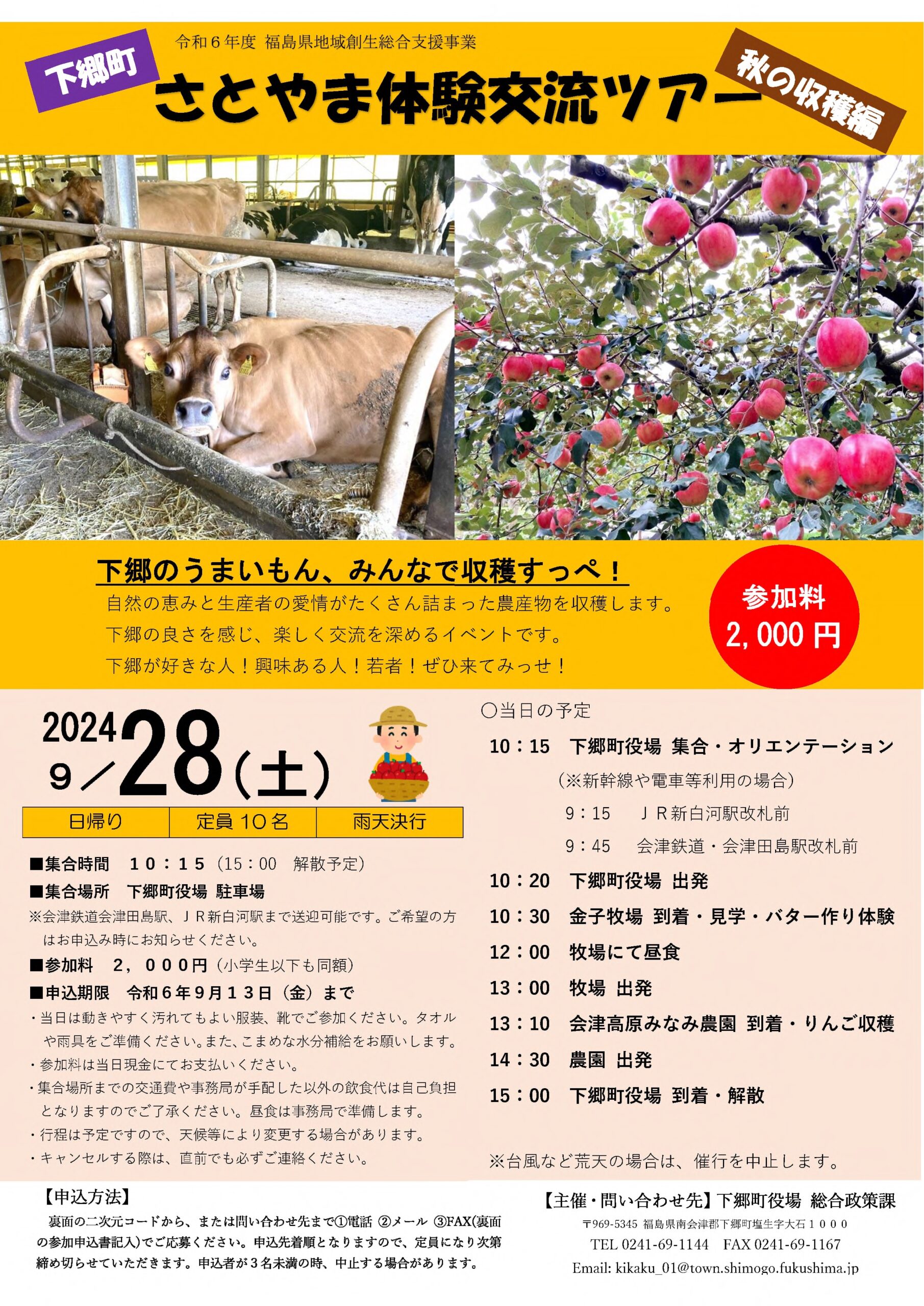 お知らせ【南会津イベント情報】🐄🍎下郷町さとやま体験交流ツアー(秋の収穫編)9月28日(土)開催!🍎🐄