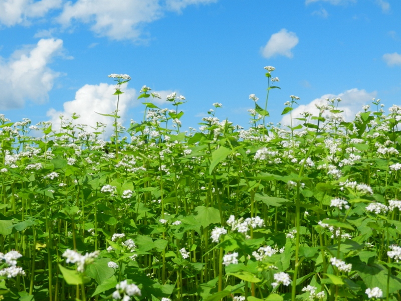8月26日 最近は朝晩、すっかり涼しくなりました。セミの声から鈴虫の声に変わり、日々季節の移ろいを感じる今日この頃です。 種まき、それから急速生長を見せていた猿楽台地の「そばの花」が見頃を迎えました!! まさに、絵になる風景が目の前に広がっていて思わず歓声をあげてしまいました♪