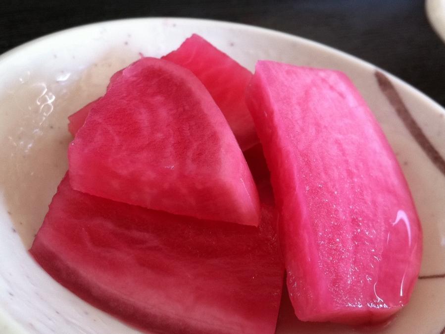 閑話休題。そんなわけで、「在来種」である赤かぶのDNAは、それぞれの家ごとに代々受け継いでいるんですね!ということは家によって味が違うということもありそうですね。「それはあるかもしれませんね。家によって実が固かったりやわらかかったりというのはありますよ。気候や土の違いもあるかもしれないけど」とのこと。当然、漬物にするにはやわらかい赤かぶのほうが美味。はたしてこちらの畑で育った赤かぶはどんな味でしょうか。