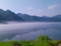 田子倉湖から。新潟の県境(奥)はちょうど見頃でした。