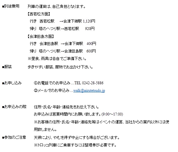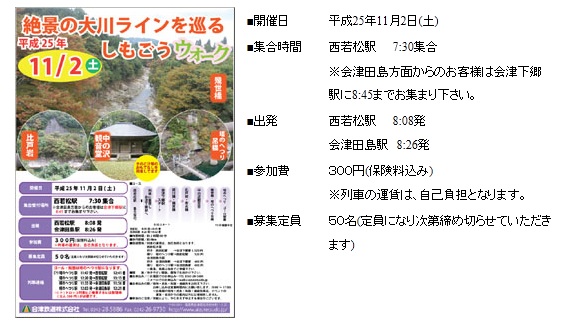 会津鉄道株式会社では、平成25年10月15日(火)~11月11日(火)の期間、キャンペーンを