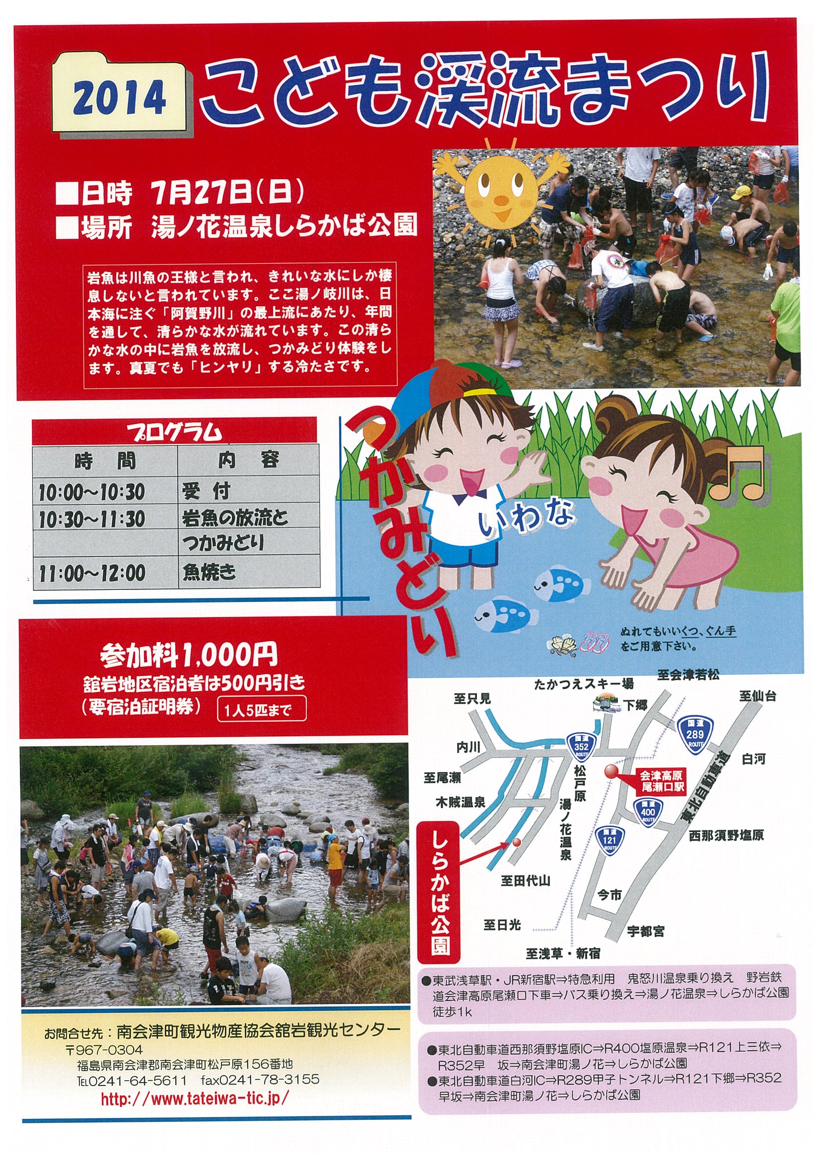 7月27日(日)南会津町湯ノ花温泉しらかば公園にて「2014 こども渓流まつり」が今年も開催されます。