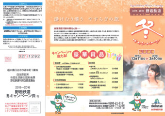 ■観光案内所新聞 VOL.8 今回からA4両面がA3両面とボリュームアップ! 「南会津の冬を楽しもう」が表一面のテーマとなっており、雪まつりの情報や、雪まつりに行くときにあると便利なもの、イベントスケジュール、スキー場のイベントスケジュール、冬の交通アクセス情報を掲載。 裏面は、楽しく読んで南会津を知っていただける内容になっています。観光案内所カウンターに置いてありますので是非お持ち帰りください。 |