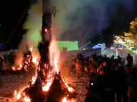 ました。大雪像の横にワラや正月飾りなどで作られた巨大おんべが3つ。棒の先に刺したお餅をその火で炙って食べ、