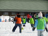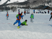 雪上フットサルのコート 雪の上なので良い所で滑ってしまいます ちびっこから大人まで参加