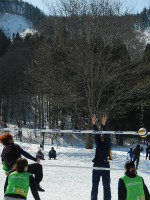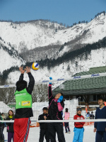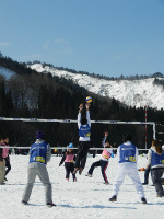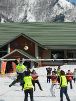 雪上バレーボールをメインに、雪上フットサル、スノーフラッグ、雪上綱引きなど、雪の上で思いっきりスポーツを楽しんじゃ
