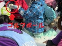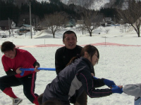 雪中宝探しは雪に埋まっているゴルフボールを探して、賞品と交換します。 綱引き大会(男女混成4人1チーム)