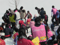 メインの雪上バレーボールは4人制(男子2名・女子2名の混合)ですので、人数的にチーム編成しやすいですし、雪の上