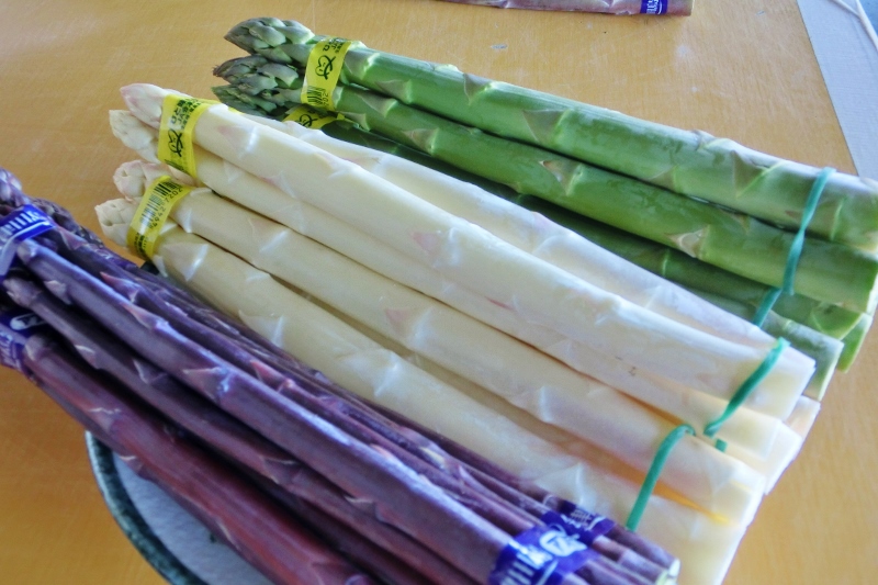 白や紫のアスパラは、なかなかお目にかかれないですよね!私は初めて見ました。