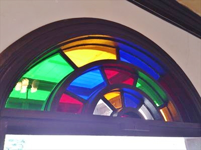 私たちを出迎えてくれた正面玄関にあるステンドグラス!