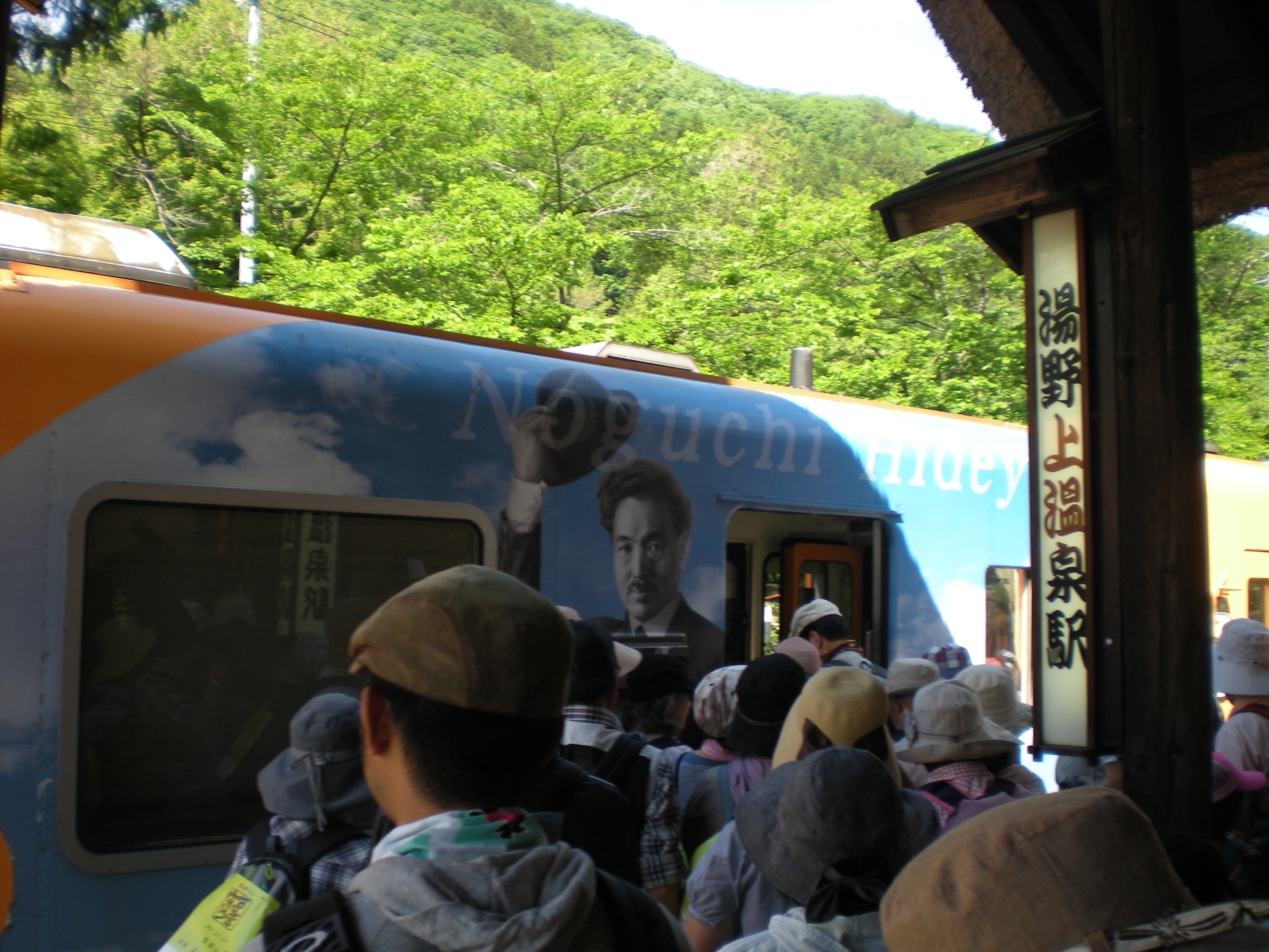 集合場所の湯野上温泉駅に到着すると続々と人が。