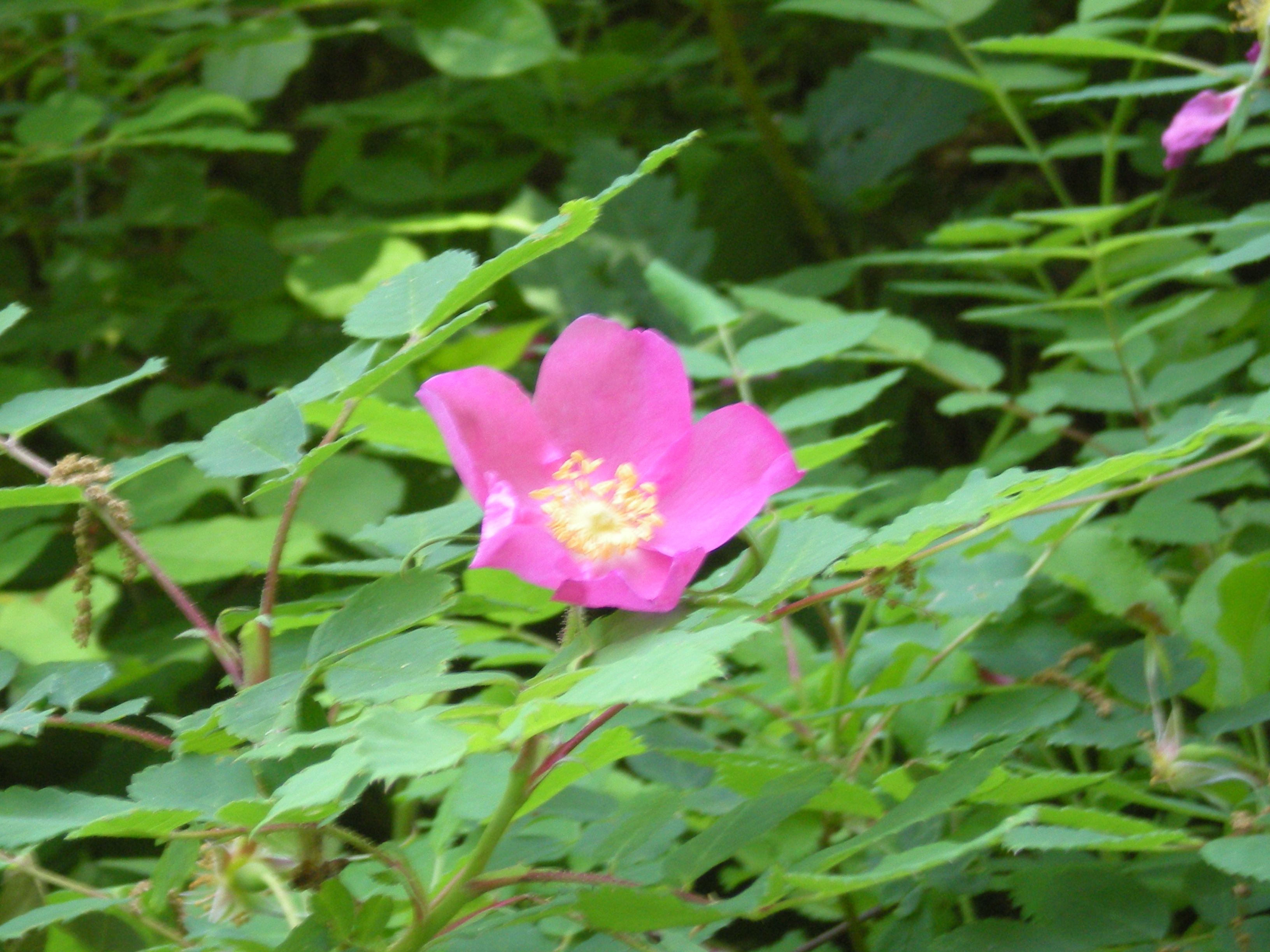 東屋を見つけ休もうとすると目の前にオオタカネバラを発見しました!