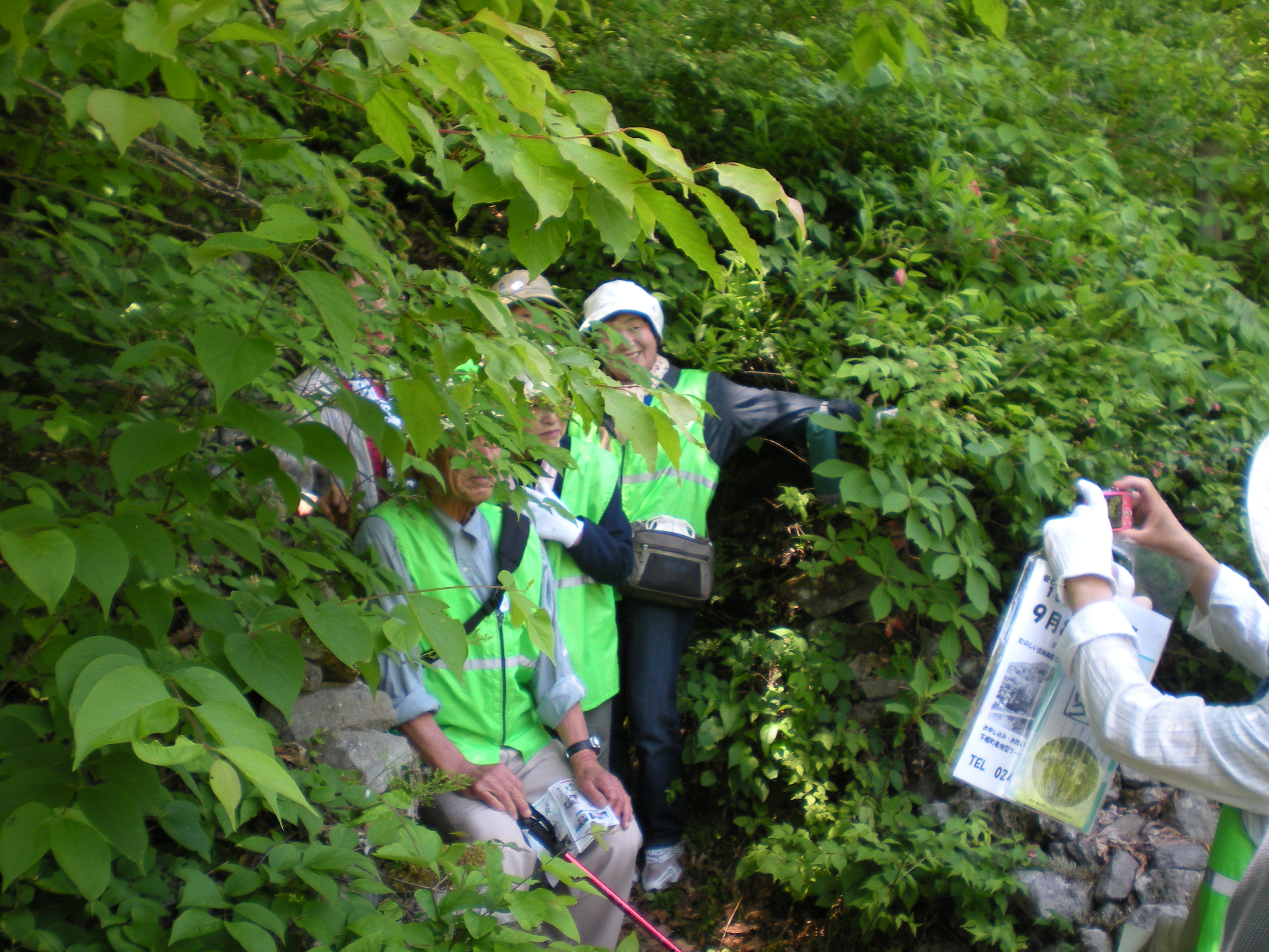 アイヅシモツケなどの花々を横目で見ていると、にぎやかな場所が。
