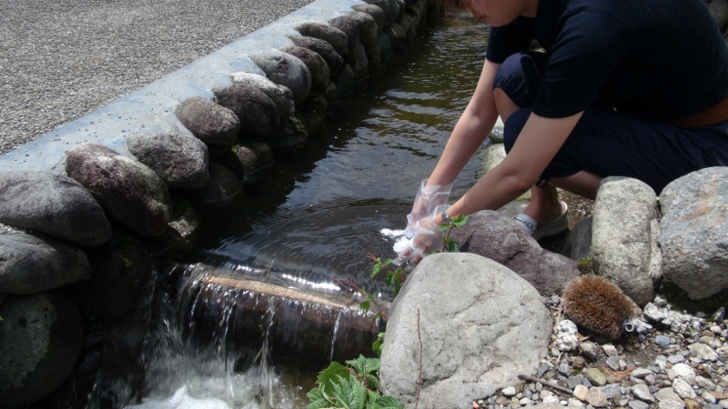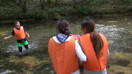 川に入るやいなや肌を突き刺すような冷たさに固まってしまいます。「入っちゃえば大丈夫~♪」の声に、