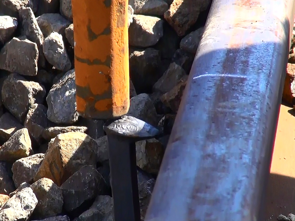 | 犬釘が少しづつ埋まっていきます | 見た目とは違って大変な重労働です |