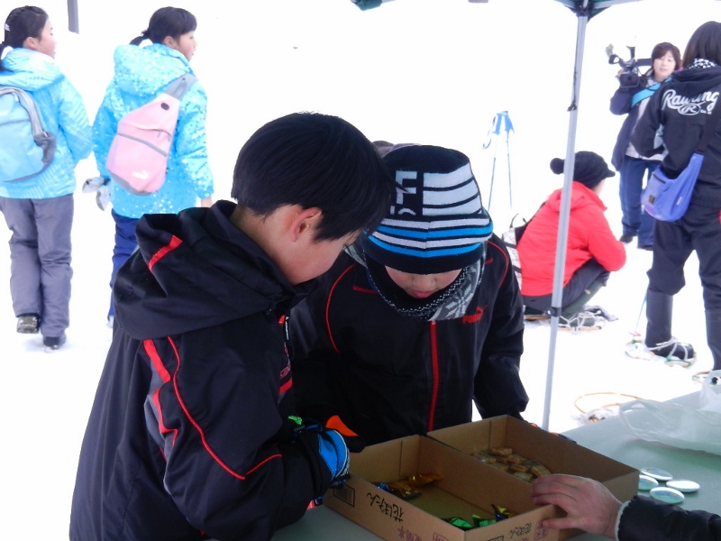 雪ウォーク終了後はお楽しみ抽選会、歳の神、