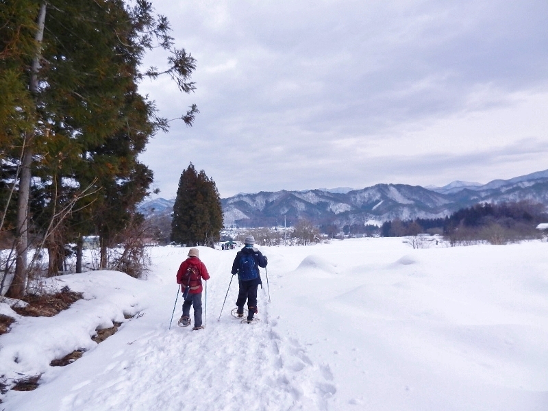 冬の南会津の景色を堪能しながら、ゴール目指して雪上をひたすら歩きます。