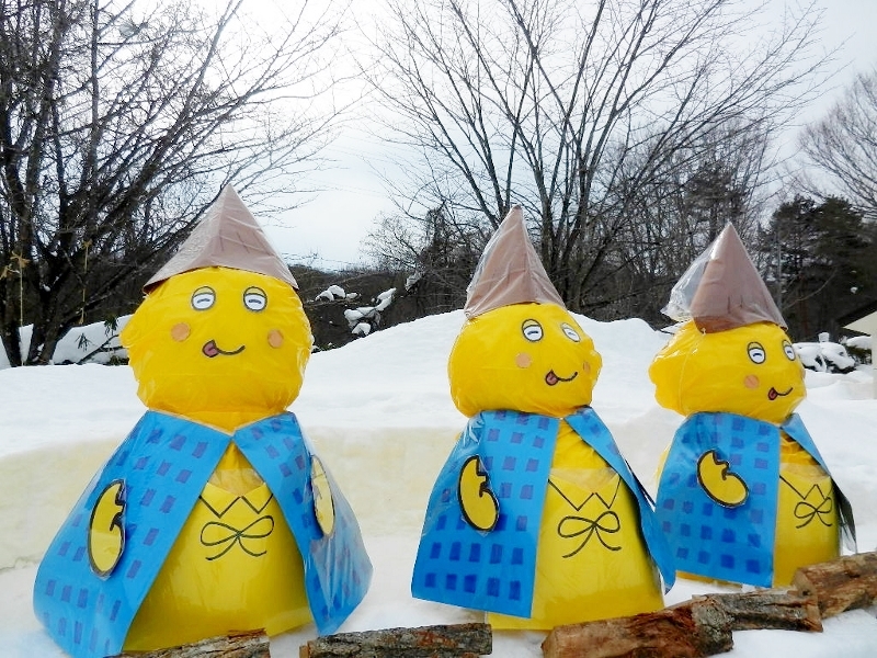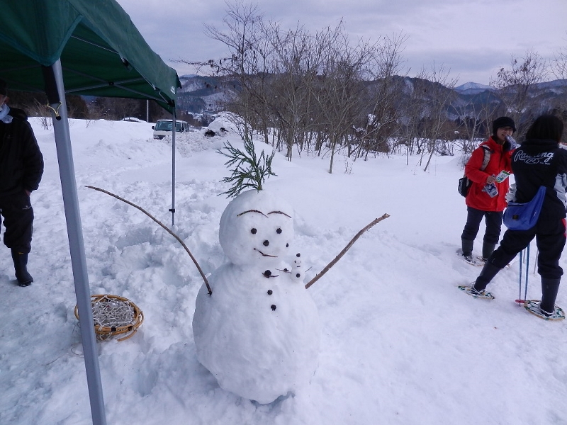ゴール会場では「雪だるまんだべぇ」がお出迎え