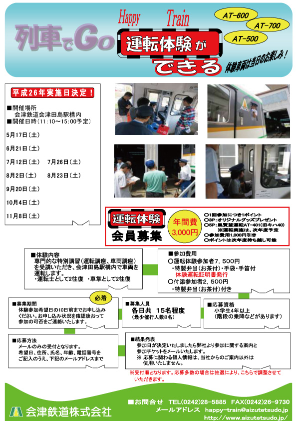 鉄道好きにはタマラナイ!お子さん達も大喜びの会津鉄道の人気企画、「列車でGO Happy Train」の今年の開催日程が決定しました!