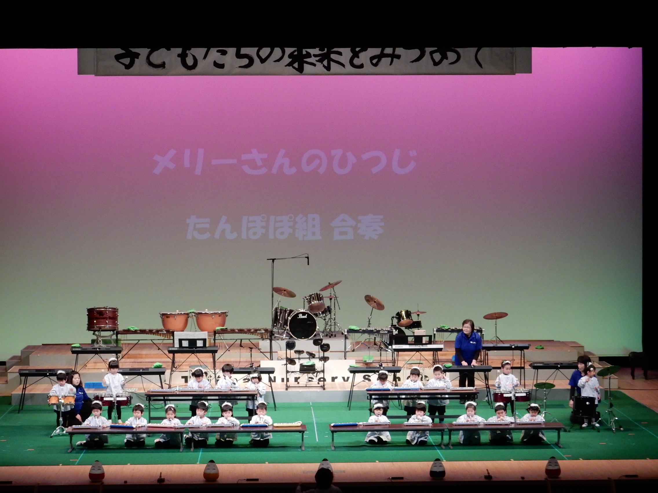 最初の発表は 3歳児による鍵盤ハーモニカと楽器の合奏でした。