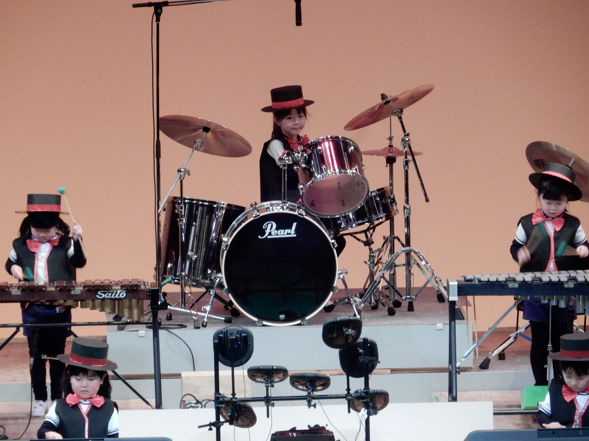 5歳児の女の子がドラムの演奏をしました。