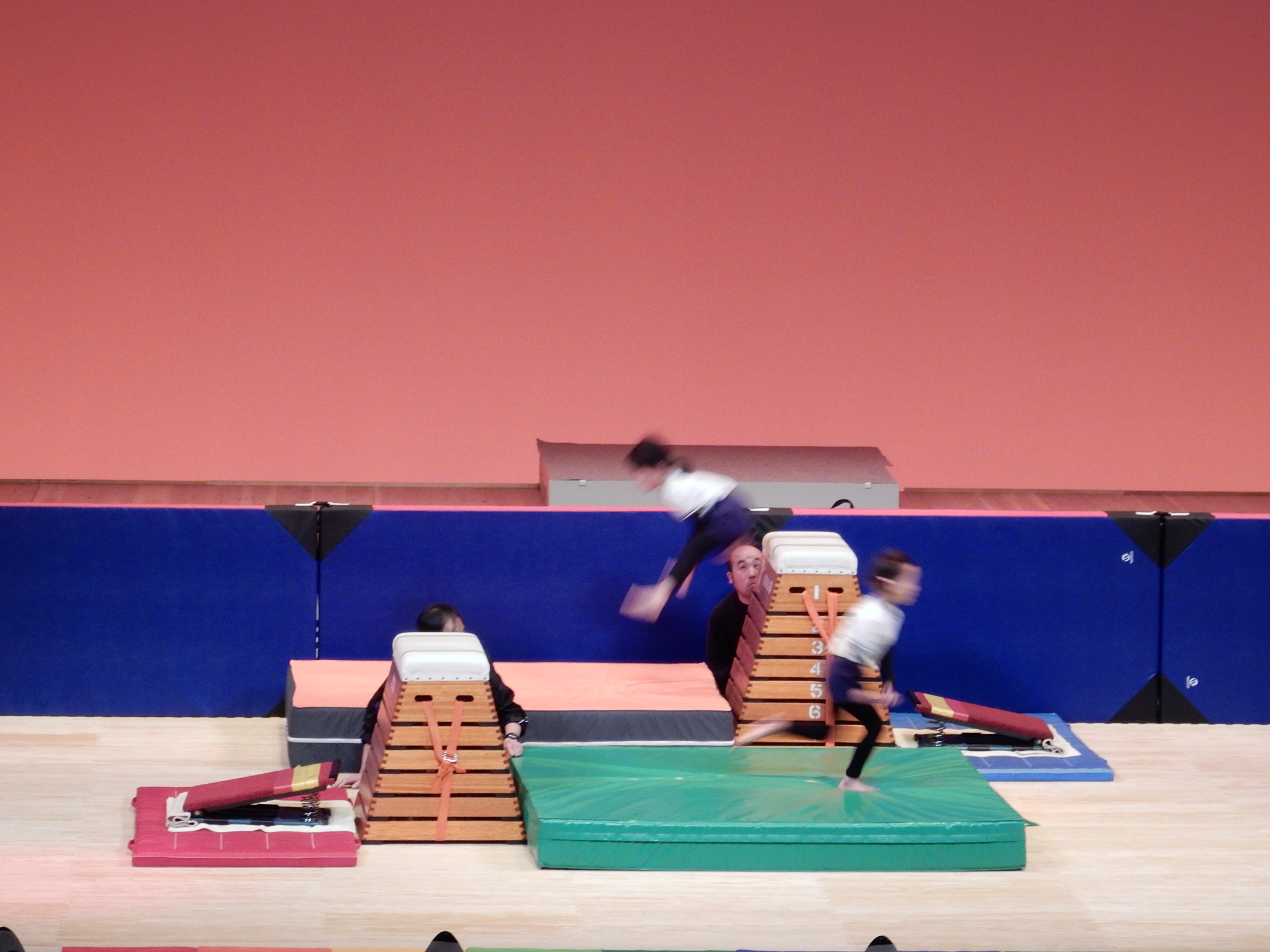 6段と8段の跳び箱を軽々と飛び越えていて、