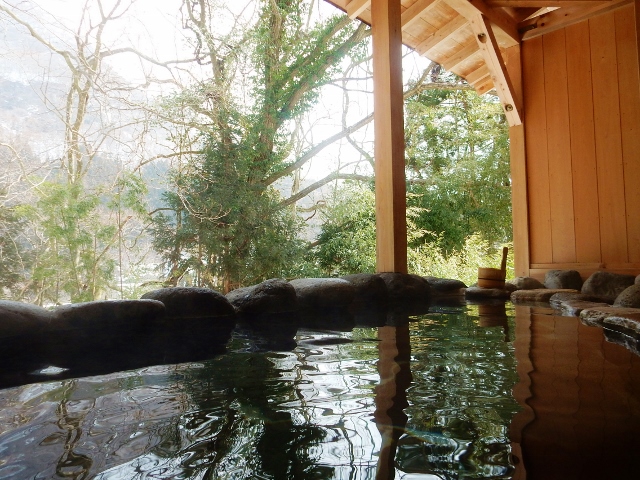 1日1組様限定の「囲炉裏の間」での団らんや、緑に囲まれた源泉かけ流しの露天風呂では、癒しのひとときを過ごせます。
