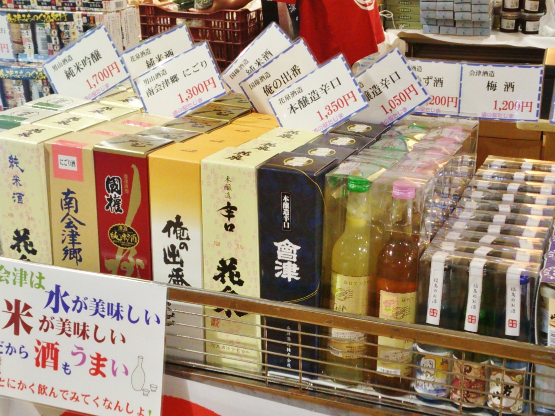 南会津町にある4つの酒蔵から「国権」「男山」「花泉」「金紋 会津」の地酒や、3色アスパラ、只見町からは「ふくしまおぃしい大賞2015」受賞の南郷トマトジュース、どぶろくもあります。