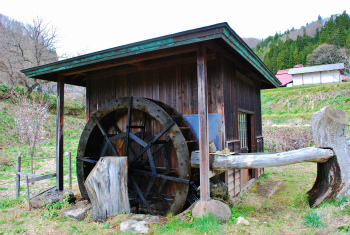桑取火カタクリ群生地への目印はこちらの水車小屋。