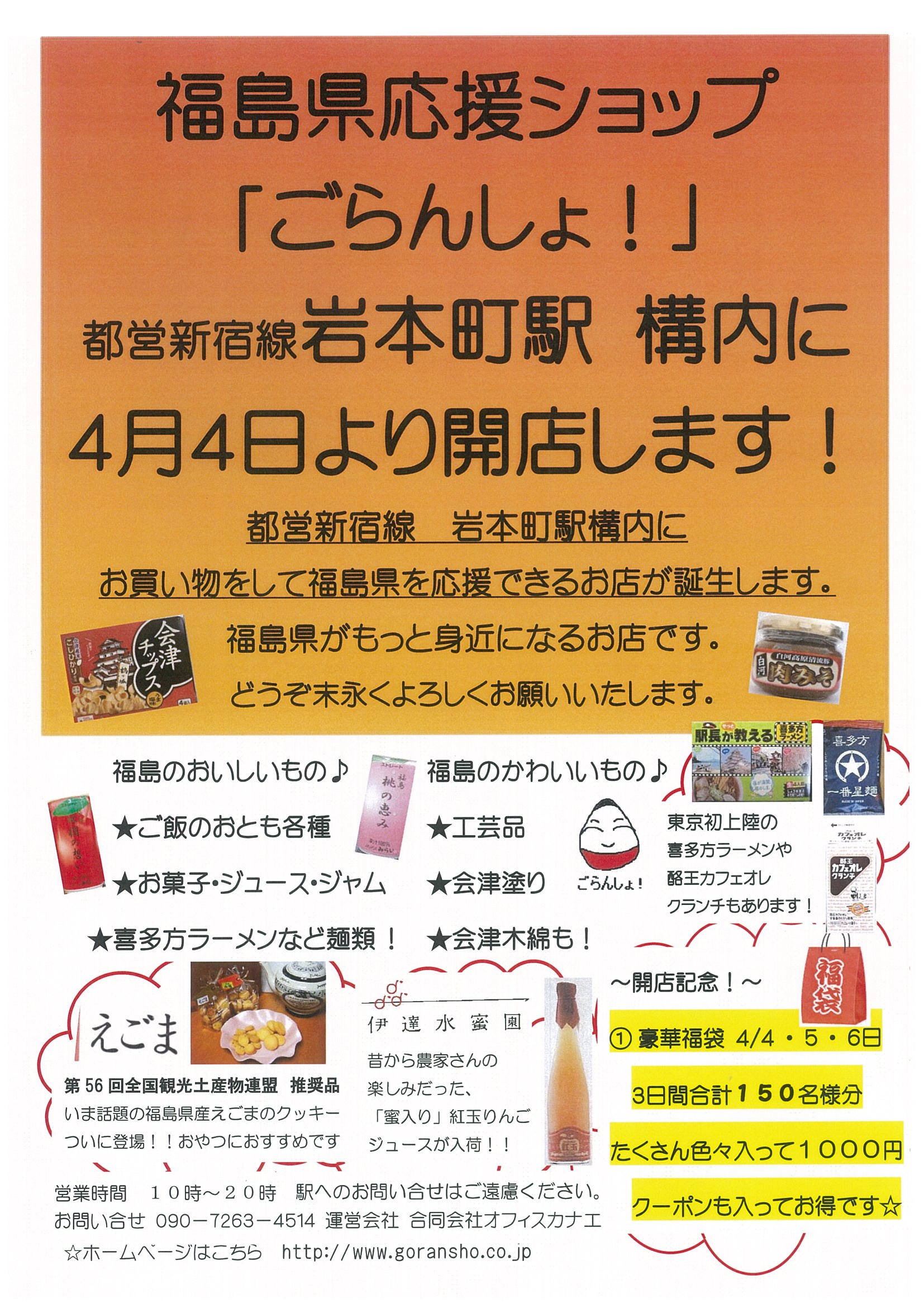 福島応援ショップ「ごらんしょ!」が4月4日に都営新宿線岩本町駅構内にオープンしました!