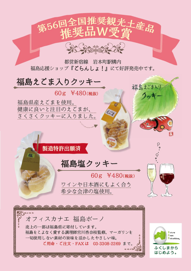 東京初上陸の福島ブランドや、第56回全国土産物連盟推奨品である「福島県えごまのクッキーも多数入荷しました。