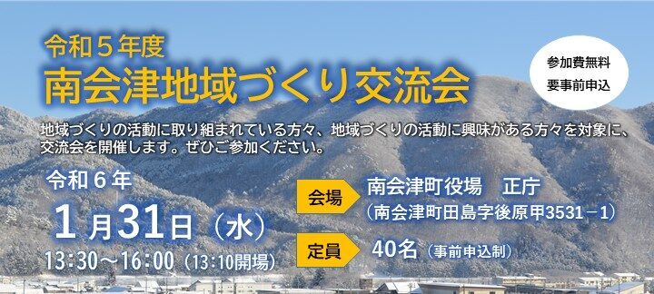 【1月31日(水)開催】令和5年度南会津地域づくり交流会