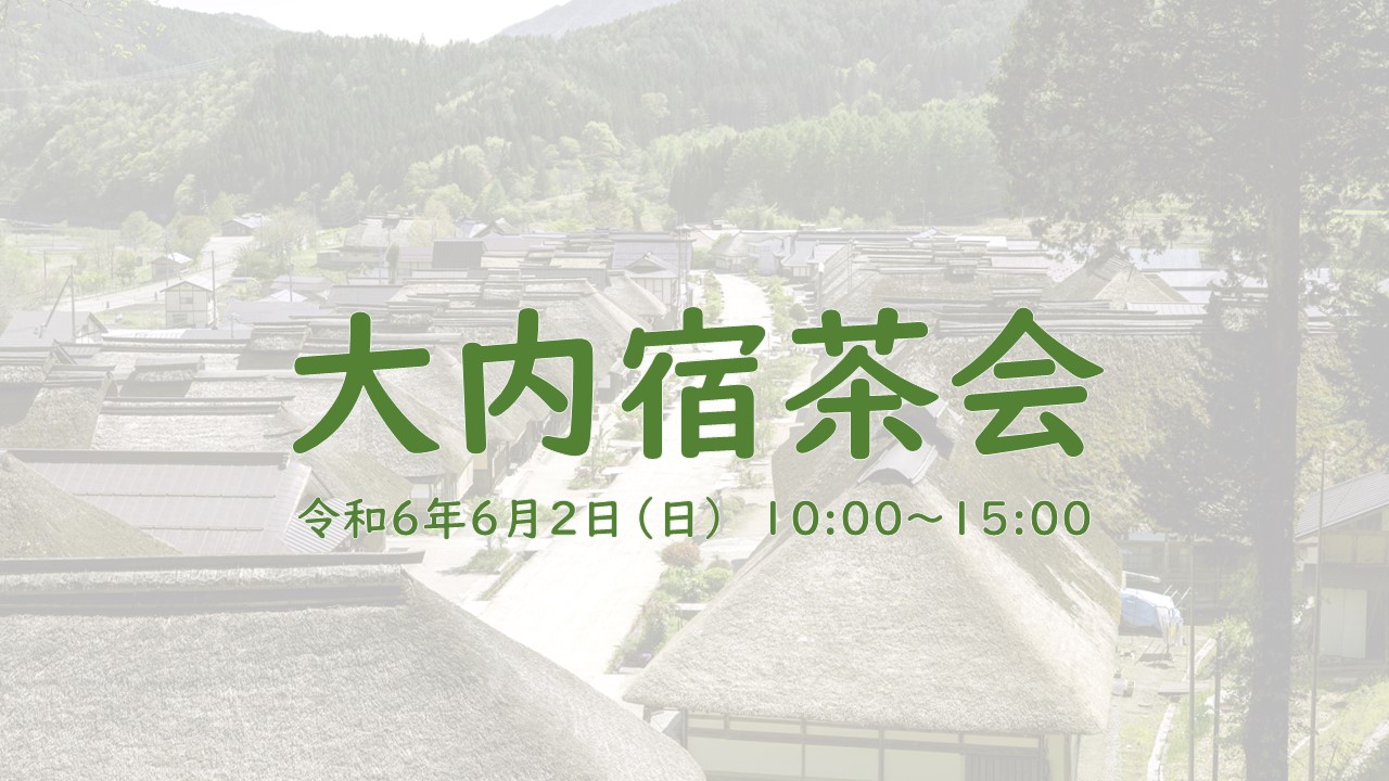 6月2日(日)に下郷町の大内宿で「大内宿茶会」が開催されます。 大内宿本陣は会津若松市と日光市今市を結ぶ下野街道の拠点のひとつとして江戸初期に建てられ、江戸参勤の際には会津藩主が街道を利用し、大内宿で茶や昼食をとったという・・・