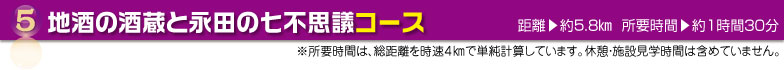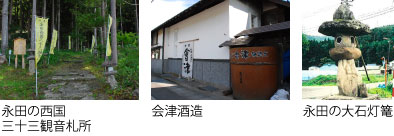 コース中盤の永田地区には、古くから七不思議の伝承があり、【永田の大石灯篭】は撫でると長病みが治ると伝えられ、地元の人々によって大切に守られています。また、【永田の西国三十三観音札所】は約30 分で全ての札所を巡ることができます。