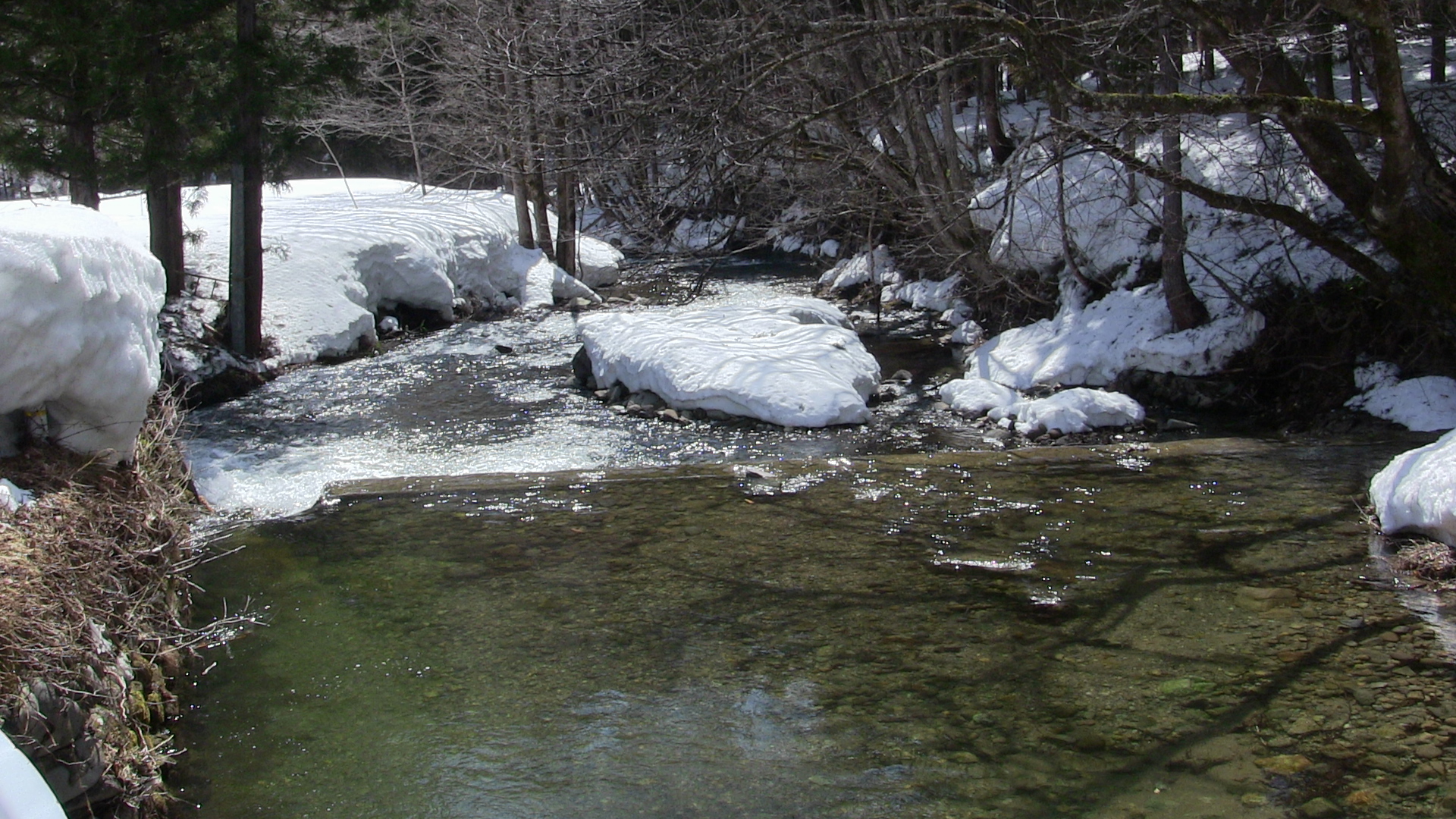 木地小屋沿いには「戸石川(といしがわ」下流に行くと「姫川(ひめかわ)」と呼ばれる清らかな川が流れています。