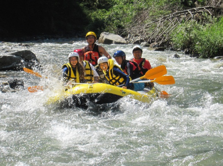 ラフティング専用のゴムボートで、急流や清流の川を下るスポーツです。プロガイドと共に漕ぎ下ります。スリルと楽しさが味わえます。
