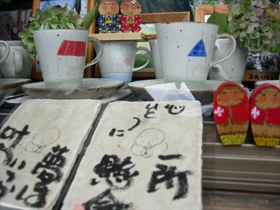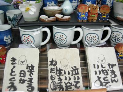『陶芸工房はる』(→ http://www.art.a-vst.jp/sakka/ha/hh/hh.html)の素朴で味わいのある器や、幸福のフクロウの置物が人気。