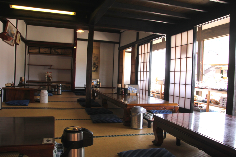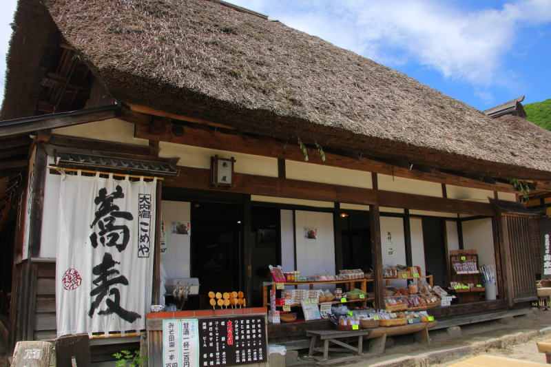 郷愁誘う囲炉裏の温もり。茅葺屋根の民家で味わう、そばと昔懐かしい故郷(ふるさと)の味。「こめや」のそばは婆ちゃんから嫁さんに伝わってきた家庭の味、そして家伝の味です。「おろし揚げもちそば」がおすすめです。