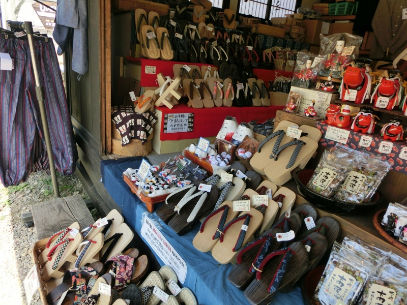 実は、この田沼商店さんには、分店があるんです。場所は、真向かいです。店の名前もかかげていません。大内宿のマップにも載ってない、隠れ家的なお店です。店頭に並ぶ商品は、桐下駄・会津もめんの製品など。桐下駄は、ご主人手作りのものなんですよ。マップに載らないお店・・・探してみてください。(下の写真は分店です)