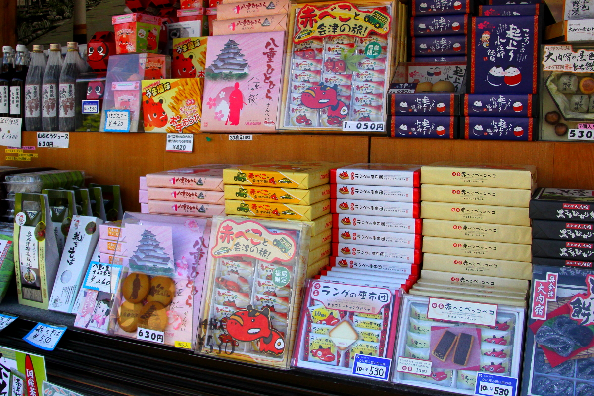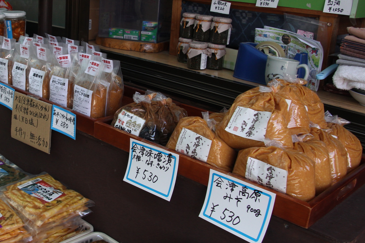 会津全般のお土産物を扱う「分家扇屋」さん。下郷町の名産やお菓子、キーホルダーなどの小物のほか、地元「陶芸工房はる」の水ばんも取り扱っています。コーヒーやソフトクリーム、玉こんにゃくなどの軽食も買うことができます。