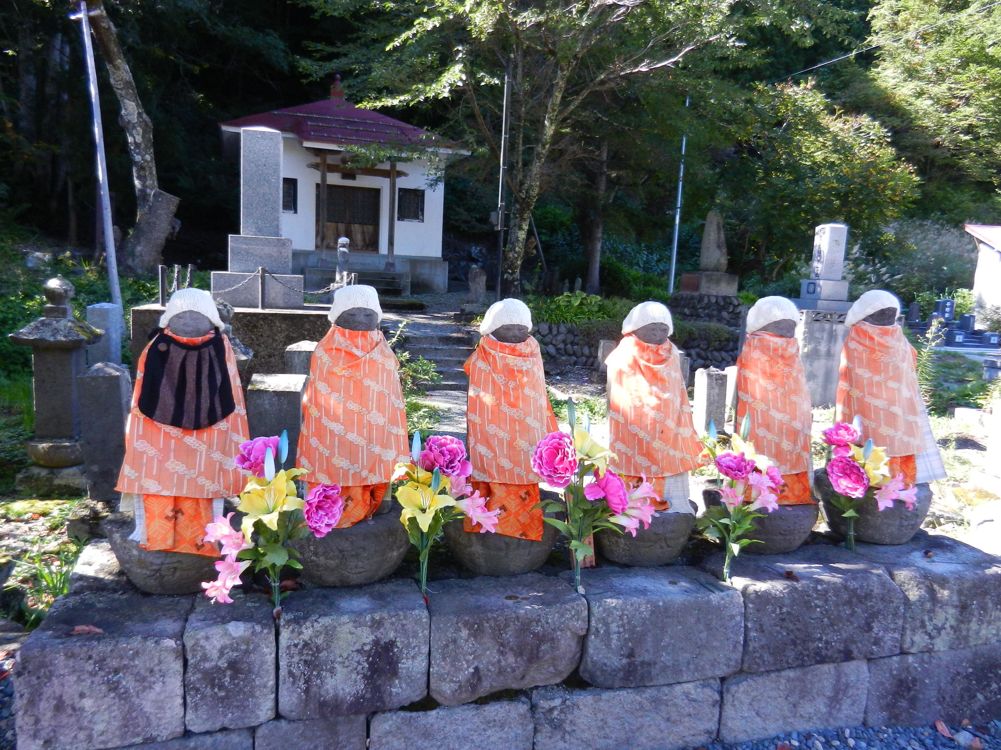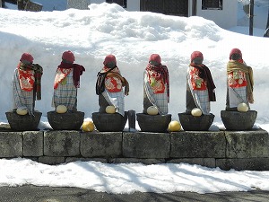 このお地蔵様が身につけている服は、地元の方々があつらえたもの。季節に合わせて替えられているようで