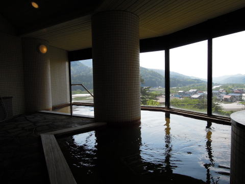 高台にある温泉からは、伊南川の清流と豊かな自然につつまれた田園風景が一望できます。