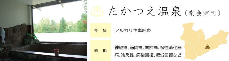 たかつえ温泉は、七ヶ岳の南西麓に広がる会津高原の温泉。