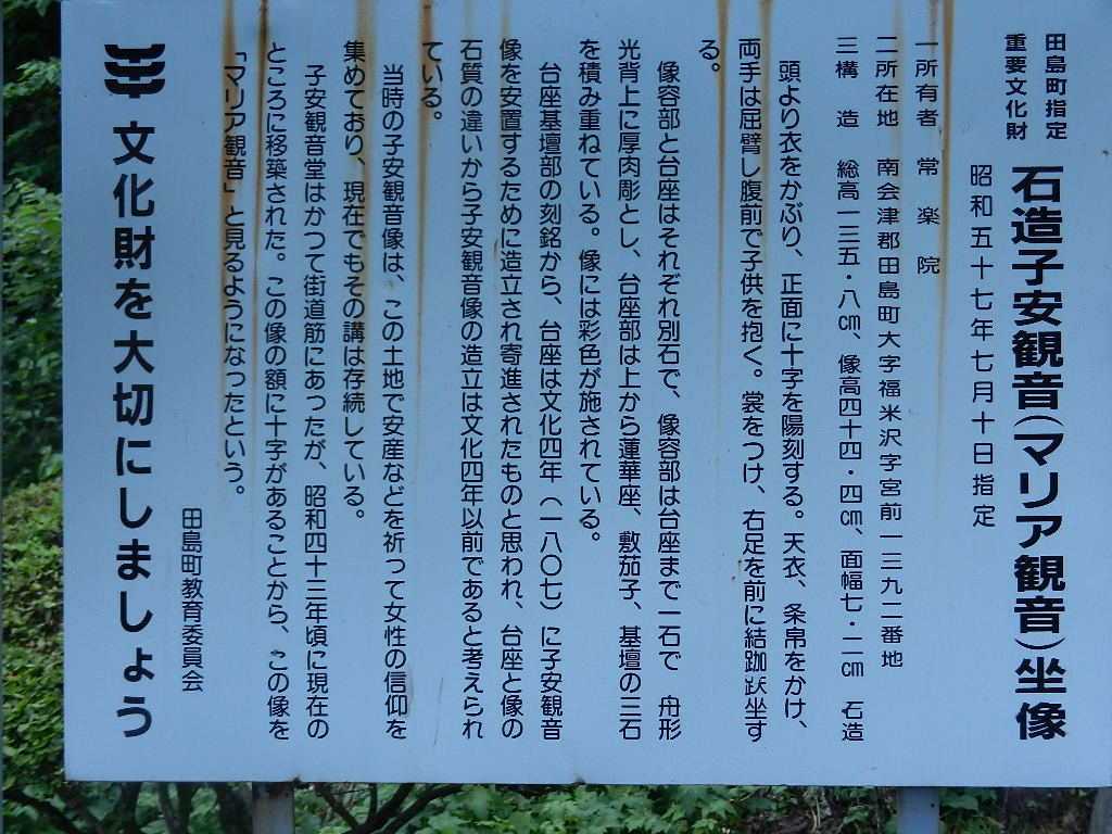 会津は隠れキリシタンの名残が各所にあり、常楽院境内の一隅にあるこの子安観音像も「マリア観音」と呼ばれています。