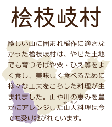 裁ちそば、はっとう、ばんでい餅、サンショウウオの天ぷらをはじめとする「山人料理」を食べるならここ。