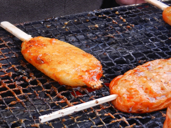 大内宿入口左側4軒目。玉こんにゃくやパイナップル巨峰ソフトクリーム(5~10月販売)を散策