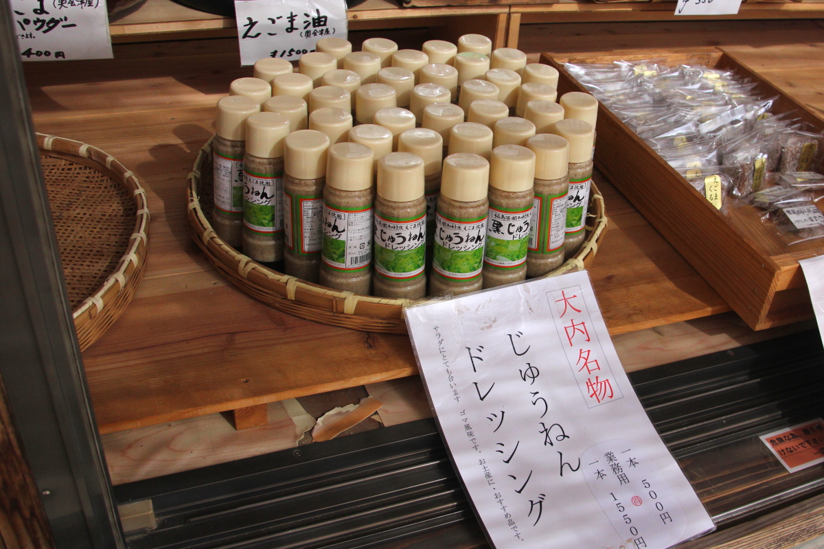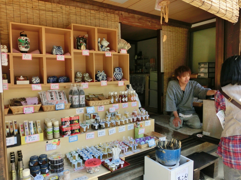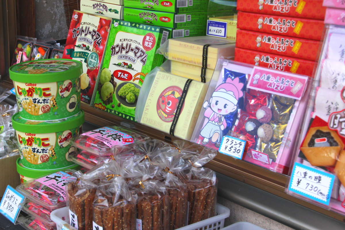 会津全般のお土産物を扱う「分家扇屋」さん。下郷町の名産やお菓子、キーホルダーなどの小物のほか、地元「陶芸工房はる」の水ばんも取り扱っています。コーヒーやソフトクリーム、玉こんにゃくなどの軽食も買うことができます。