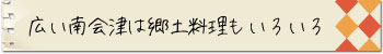 | 南会津地域で今も親しまれている郷土料理を中心に、懐かしい家庭料理をバイキング形式で提供しています。特別めずらしい素材ではないけれど、味噌汁の味噌やごはんも地元産、優しくなつかしい味わいが人気です。 店舗紹介のページへ |